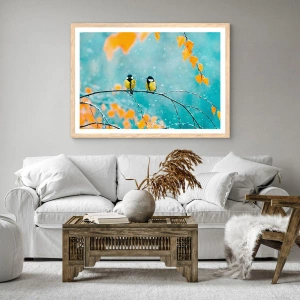 Poszter világos tölgy keretben - Madárpletykák - 91x61 cm