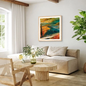 Poszter világos tölgy keretben - Toszkán táj - 50x50 cm