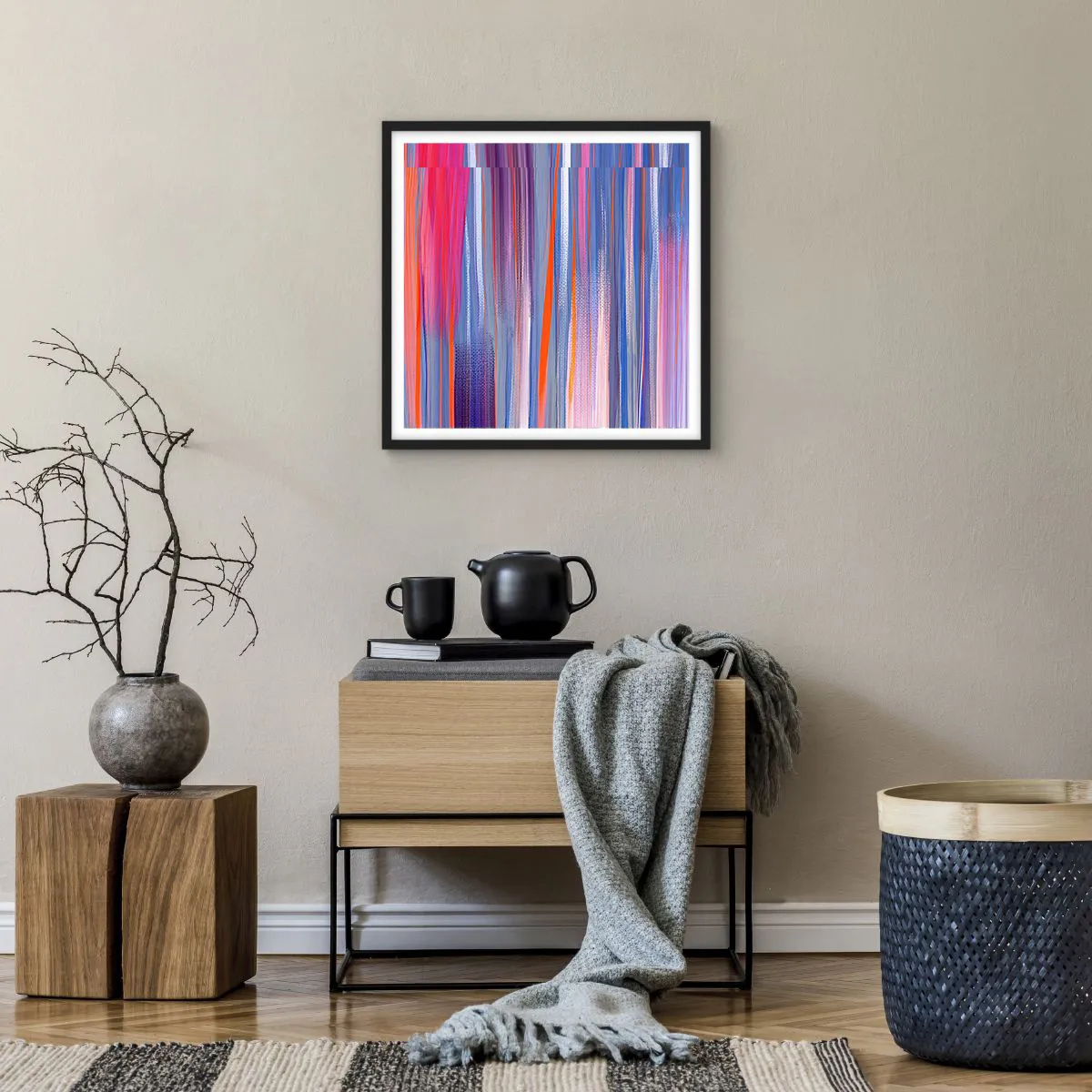 • Csíkok, Absztrakt, Művészet, Absztrakt muveszet, Irodába, dolgozószobába, étkezőbe, előszobába, nappaliba, hálószobába, Piros kék, Négyzetes