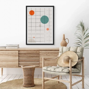 - Ez a modern poszter egy rácsból és színes körökből álló absztrakt kompozíciót ábrázol. Minimalista és harmonikus dekorációs darab, jellegzetes dizájnnal.