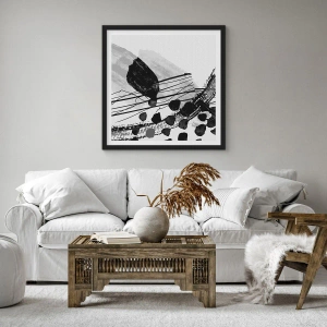 Poszter fehér keretben - Fekete-fehér organikus absztrakció - 70x50 cm