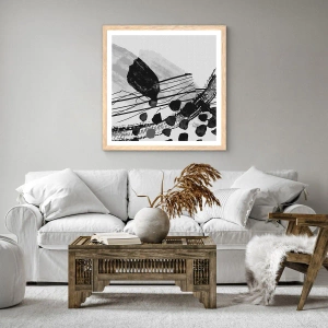 Poszter világos tölgy keretben - Fekete-fehér organikus absztrakció - 60x60 cm