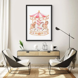 • Körhinta, Lányos, Lovak, Gyerekeknek, pasztell, vintage és retro, A gyerekszobába Fehér, rózsaszín, Négyzetes