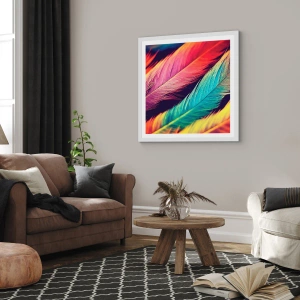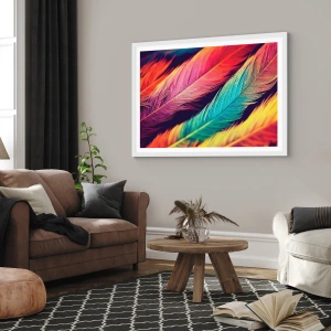 Poszter fekete keretben - Tollas szivárvány - 50x40 cm