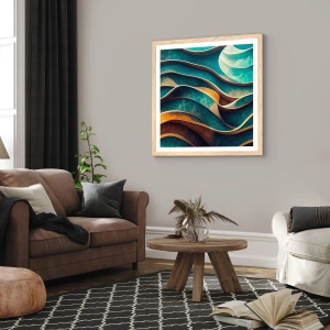 Poszter világos tölgy keretben - Kék kanyarulatok - 30x40 cm