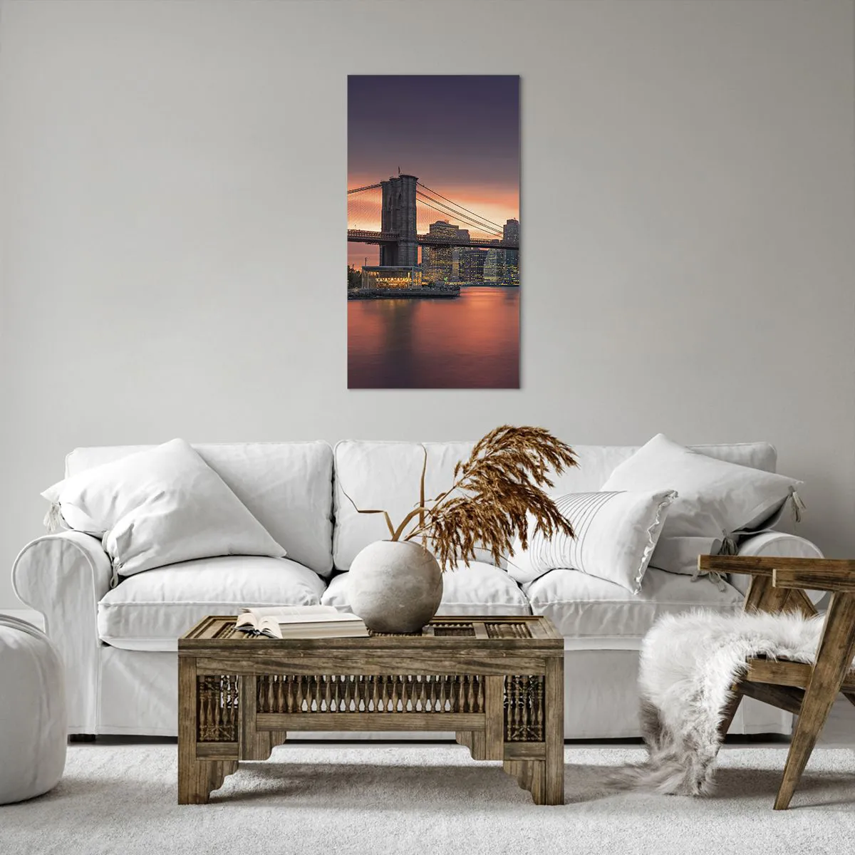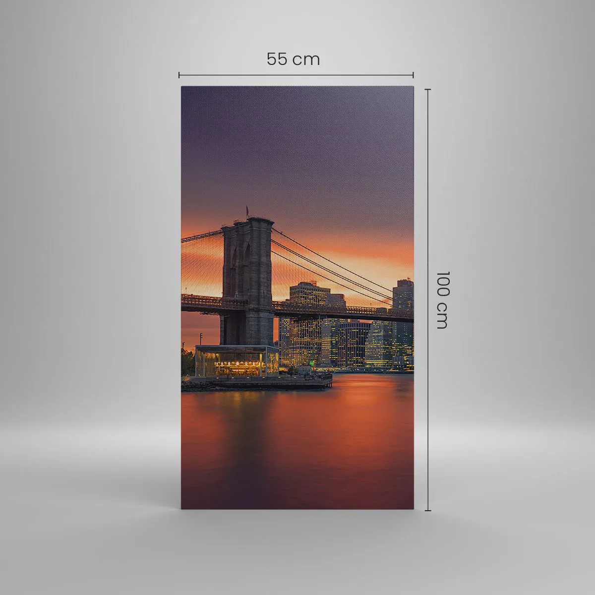 A vászon a keretre van feszítve. Az oldalak és a szélek nyomtatva vannak, a kép folytatását alkotva. A kép készen áll a falra akasztásra. Minden termékhez tartozik egy, a kerethez rögzített akasztó és egy rögzítőkészlet (csavar + dübel).
