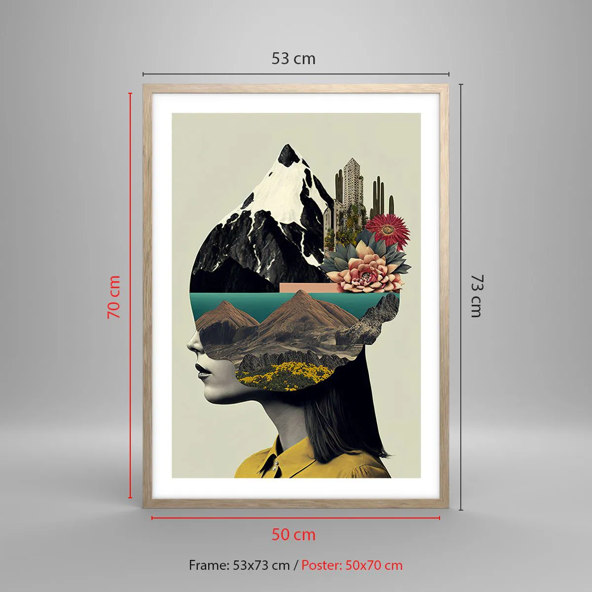 Poszter világos tölgy keretben - Nő - mindig rejtély - 50x70 cm
