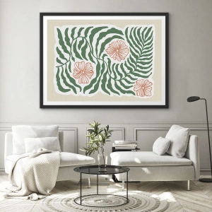 Poszter fehér keretben - Zöldben virágzó - 91x61 cm