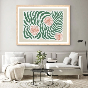 Poszter világos tölgy keretben - Zöldben virágzó - 70x50 cm