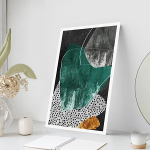• Absztrakt, textúra, kollázs, Absztrakciók, Irodába, dolgozószobába, étkezőbe, előszobába, nappaliba, hálószobába, Fehér, fekete, szürke, zöld, arany, Négyzetes