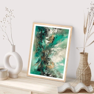 Poszter világos tölgy keretben - Smaragd-fekete kelés - 70x50 cm