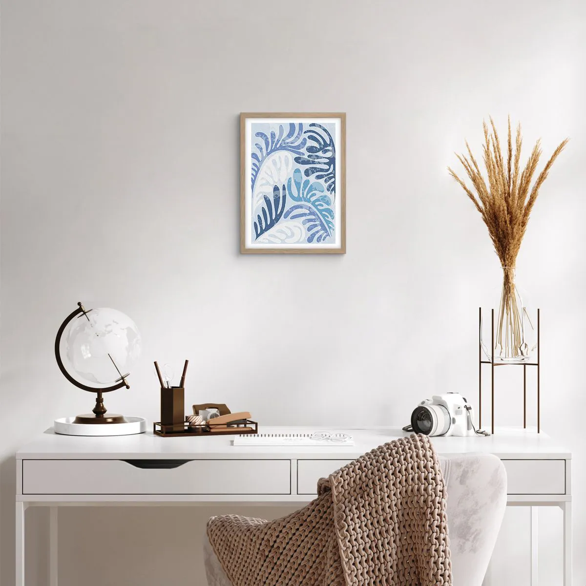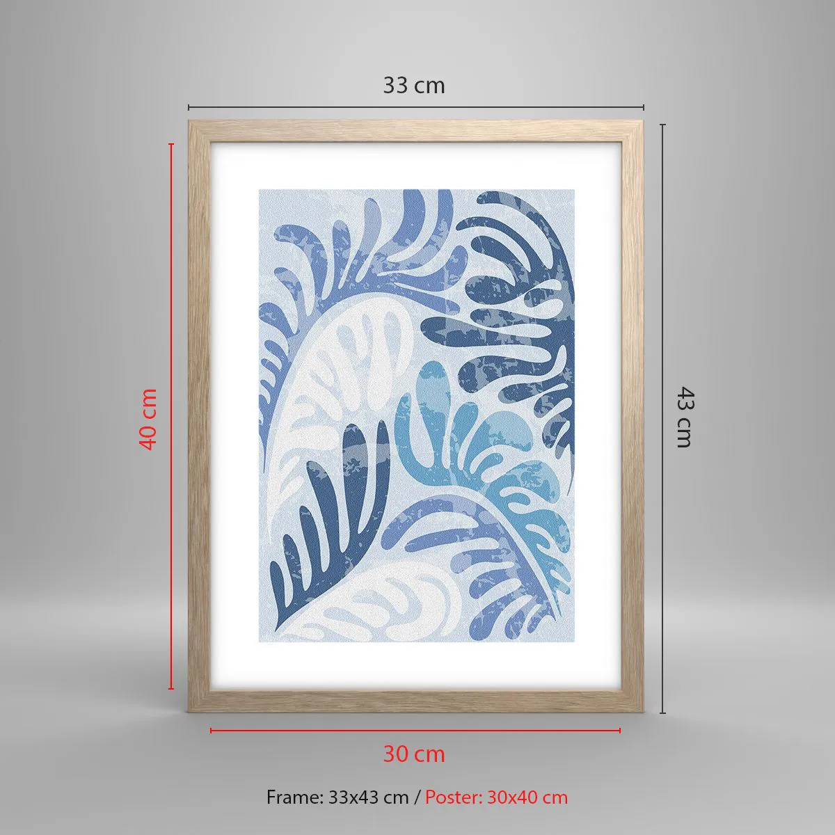 Poszter világos tölgy keretben - Kék páfrányok - 30x40 cm