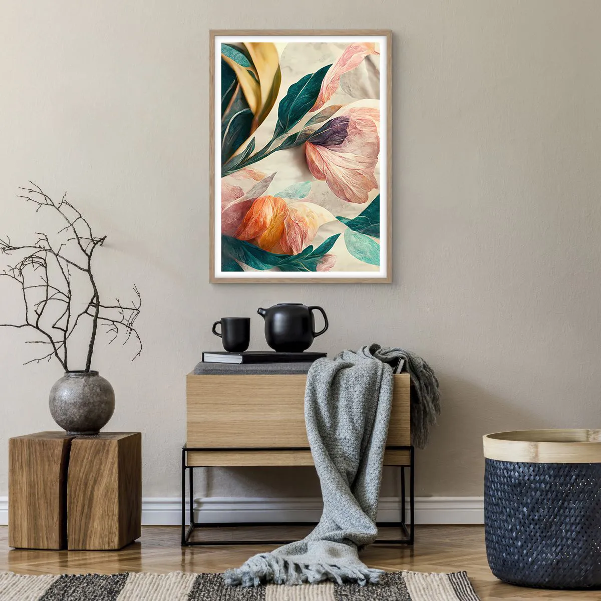 Poszter világos tölgy keretben - A déli szigetek virágai - 50x70 cm