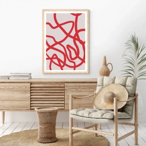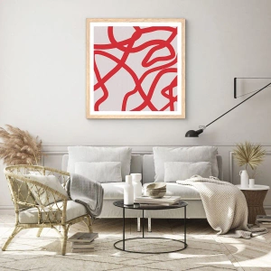 Poszter világos tölgy keretben - Piros a fehéren - 50x50 cm