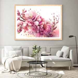 Poszter világos tölgy keretben - Cseresznyevirág - 70x50 cm