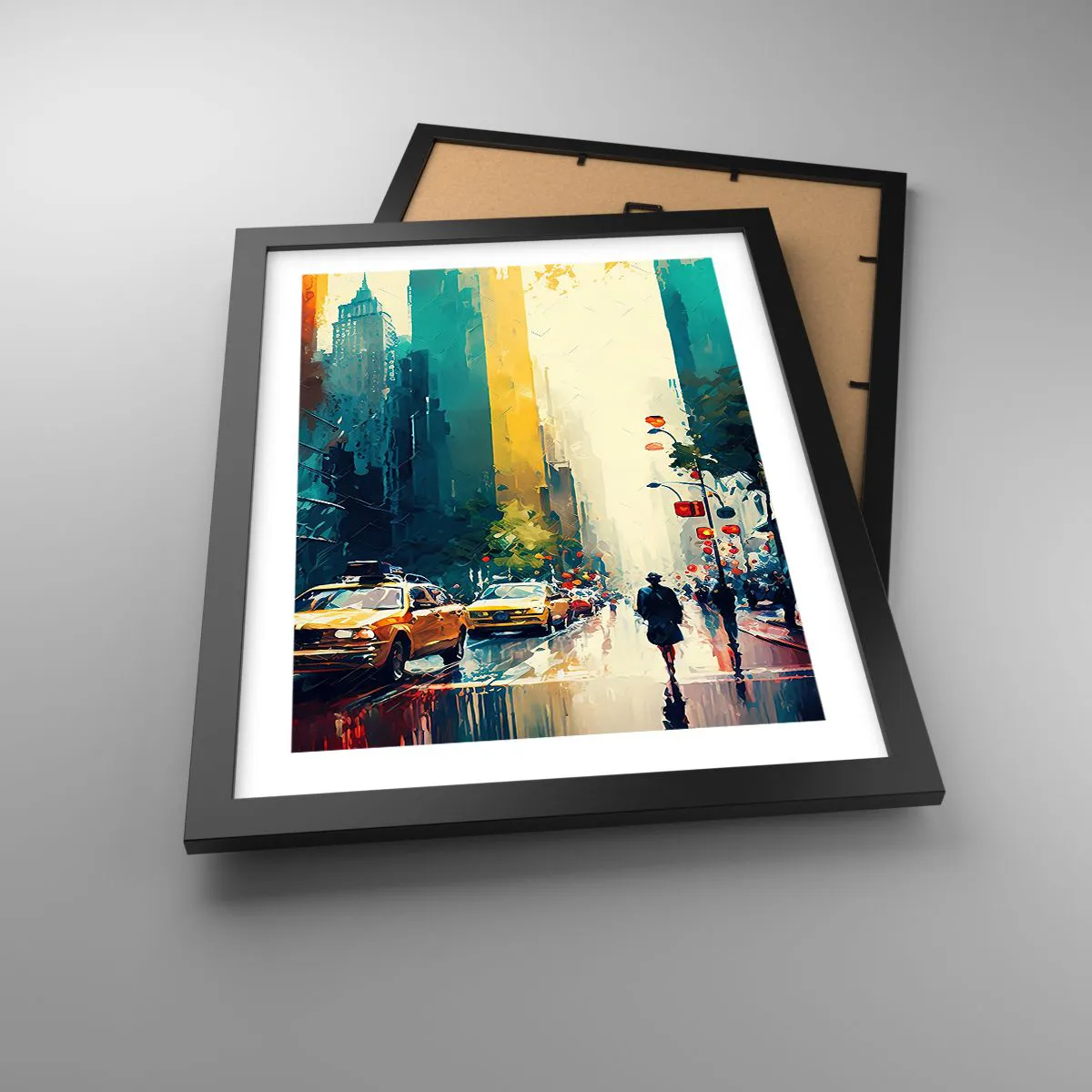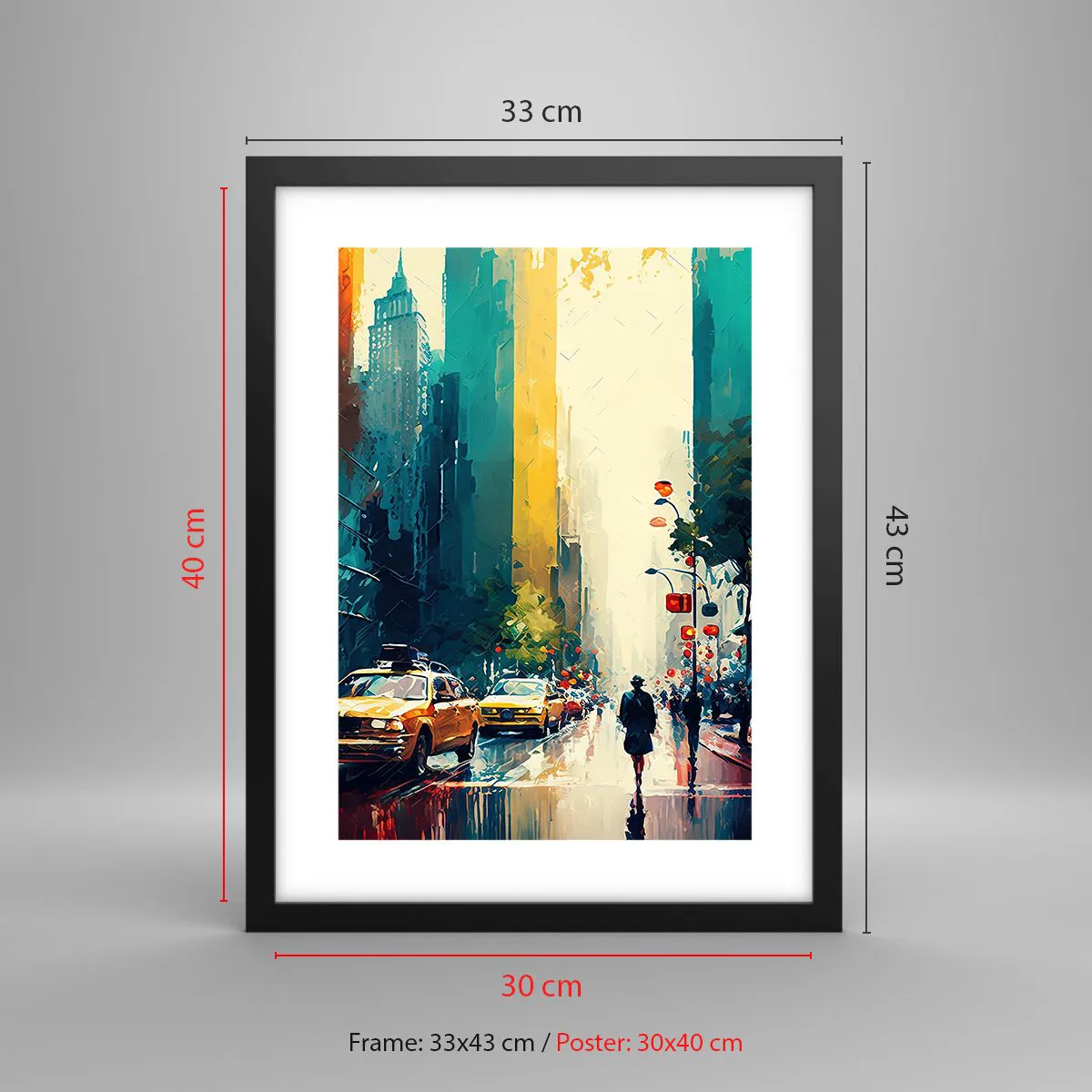 Poszter fehér keretben - New York - itt még az eső is színes. - 30x40 cm