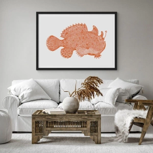 Poszter fehér keretben - Részletes illusztráció egy mélytengeri halról - 50x70cm - Mégiscsak egy hal - Modern fali dekoráció nappalihoz és hálószobához ARTTOR