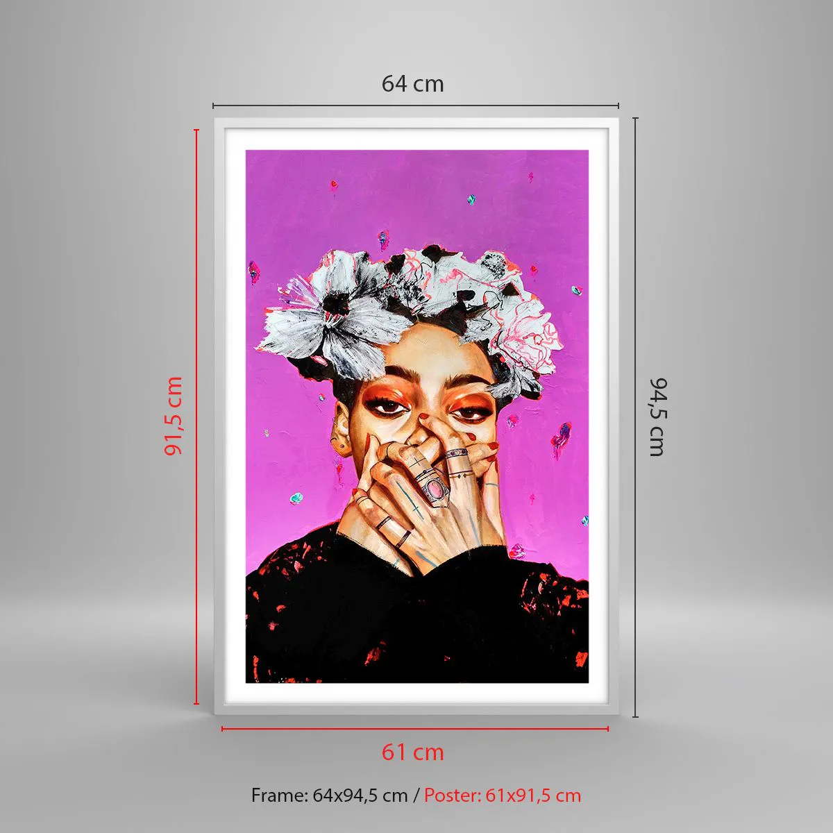 A bekeretezett poszter azonnal falra rögzíthető. A nyomat kiváló minőségű, 200 g/m2 tömegű prémium papírra készül. A modern és stílusos keret 2 cm széles MDF-ből készült. A kép hátoldalát 2 mm vastag HDF lap biztosítja. A bekeretezett poszter könnyű, és a kényelmes rögzítés érdekében akasztóval rendelkezik. Minden keret könnyű és törhetetlen átlátszó akril plexi borítással van ellátva.