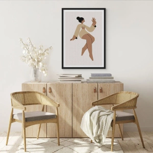 - A poszter egy mozgó nő stilizált alakját ábrázolja minimalista formában. A finom színpaletta és az egyszerű vonalak modern és elegáns jelleget kölcsönöznek a kompozíciónak. Fekete keret tartozik hozzá.