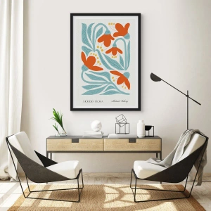 Poszter fehér keretben - Dekoratív virágok narancssárga és kék árnyalatokban - 50x70cm - A föld felé, a nap felé - Modern fali dekoráció nappalihoz és hálószobához ARTTOR