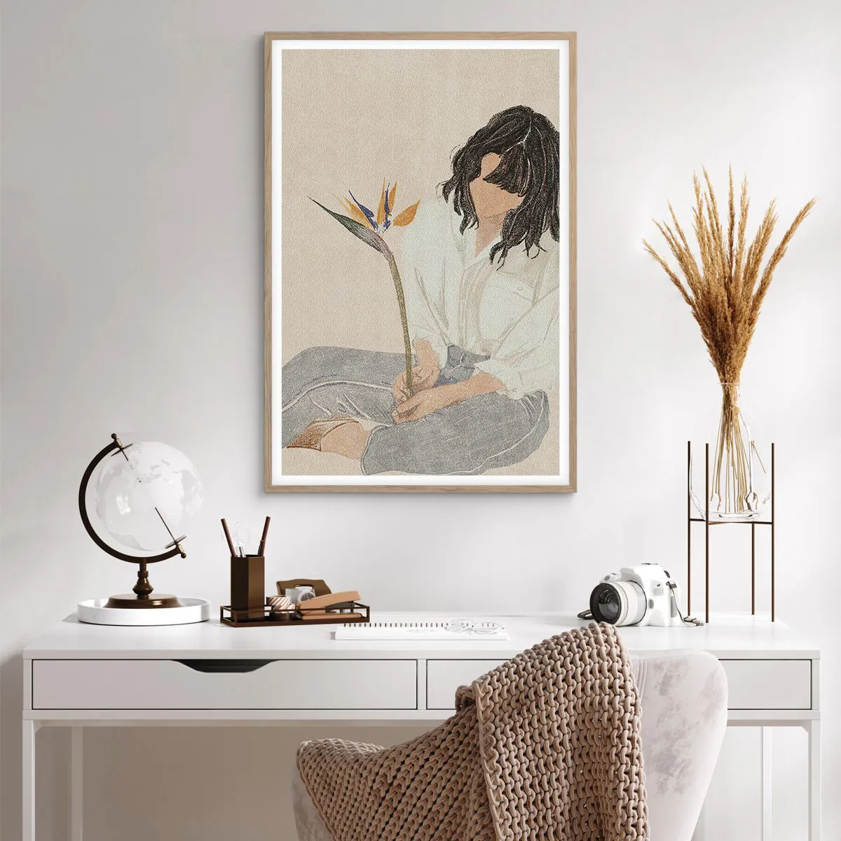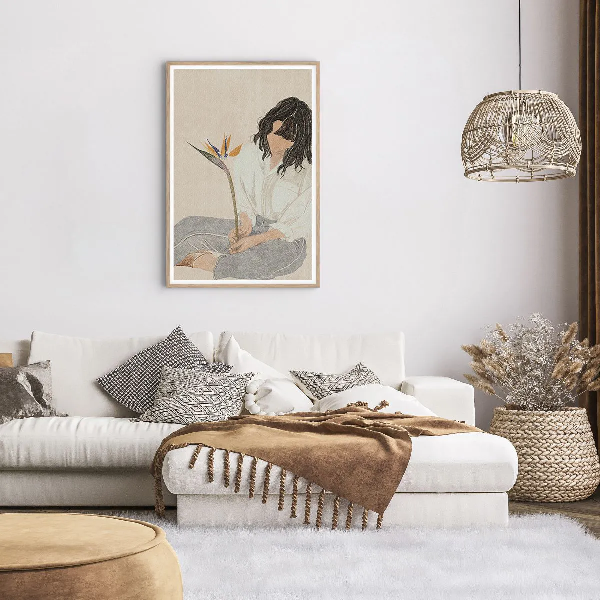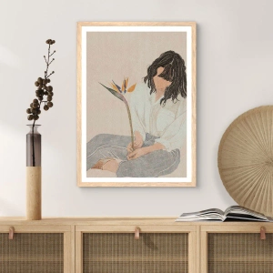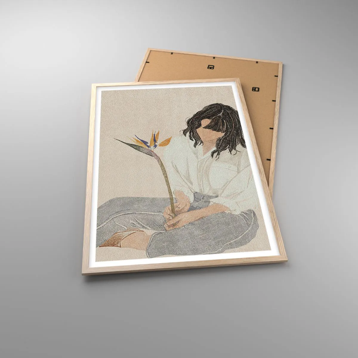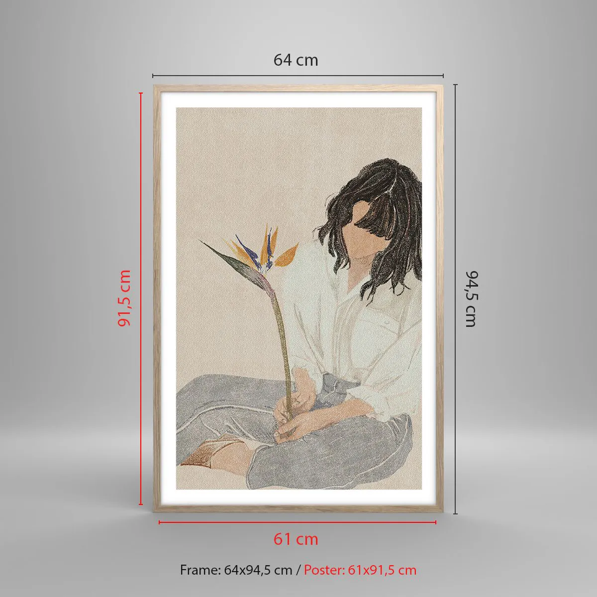 Poszter világos tölgy keretben - Portré egy egzotikus virággal - 61x91 cm