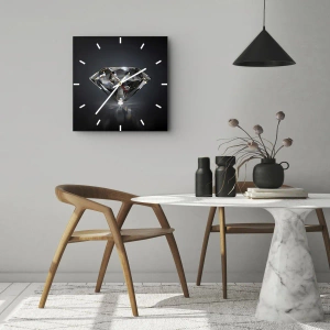 Az óra 4 mm vastag biztonsági üvegből készül. Az óra gyártási technológiája megfelel a PN-EN 12600: 2004 szabvány szerinti 2B2 biztonsági osztálynak, amely garantálja az ütésállóságot. Az üvegen lévő óra felakasztható - az óra hátuljára fém akasztó van rögzítve, és egy habtávolság szabályozza az óra és a fal közötti egyenletes távolságot. Az óra csendes úszó mechanizmussal rendelkezik, amely 1,5 V-os elemmel működik - AA elemmel (az elem nem tartozék).