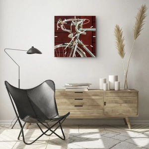 Az óra 4 mm vastag biztonsági üvegből készül. Az óra gyártási technológiája megfelel a PN-EN 12600: 2004 szabvány szerinti 2B2 biztonsági osztálynak, amely garantálja az ütésállóságot. Az üvegen lévő óra felakasztható - az óra hátuljára fém akasztó van rögzítve, és egy habtávolság szabályozza az óra és a fal közötti egyenletes távolságot. Az óra csendes úszó mechanizmussal rendelkezik, amely 1,5 V-os elemmel működik - AA elemmel (az elem nem tartozék).