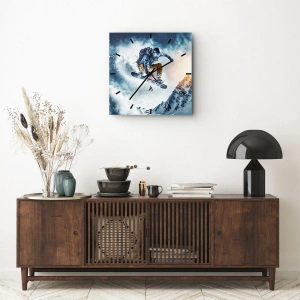 Falióra, Óra - Egy snowboardos repülés közben, hegyek és hóvihar hátterében. - 30x30cm - Extrém érzelmek - Modern fali dekoráció nappalihoz, konyhához és hálószobához ARTTOR