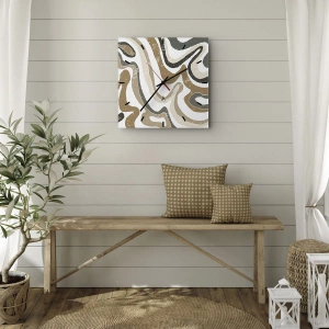 Falióra, Óra - Kanyargós földszínű csíkok fehér alapon - 30x30cm - Földszínű színek kanyarulatai - Modern fali dekoráció nappalihoz, konyhához és hálószobához ARTTOR