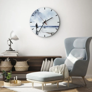 Falióra, Óra - Egy alak a tengerparton, tengerre nézve - 30x30cm - Beszélgetés a tengerrel - Modern fali dekoráció nappalihoz, konyhához és hálószobához ARTTOR