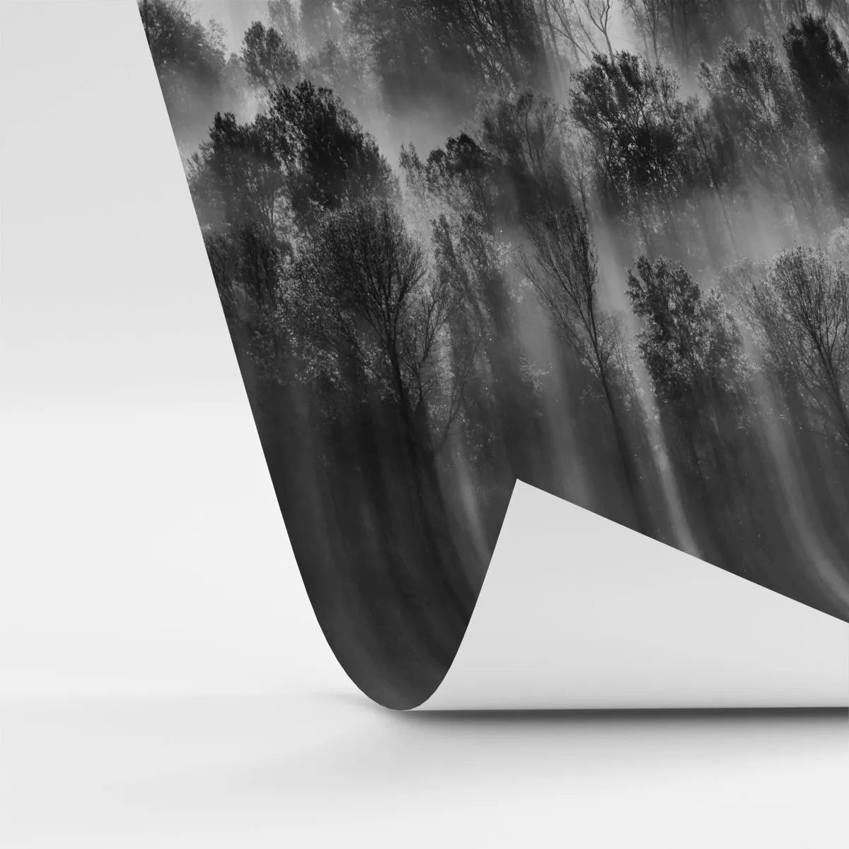 Fotótapéta Standard Eco - Fekete-fehér erdő, a fák között átszűrődő fénysugarakkal - 100x70cm - Fénypatakokban - Modern fali dekoráció nappalihoz és hálószobához ARTTOR