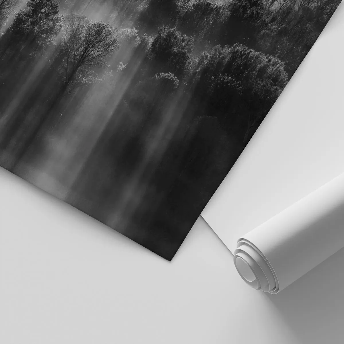 Ez a fekete-fehér tájképfotó egy erdő szépségét ragadja meg a reggeli fényben. Ez a fotótapéta tele van érzelemmel, finomsággal és a természet erejével. Tökéletesen működik faldekorációként az inspirációra és a nyugtatásra szánt terekben. A fény és árnyék játéka, a forma egyszerűségével kombinálva, egyedi hangulatot kölcsönöz a belső térnek.