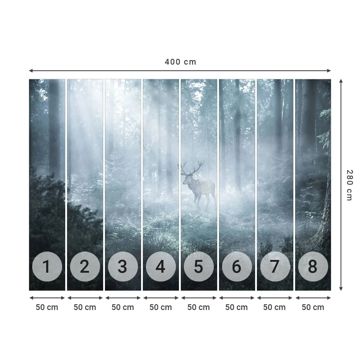 Fotótapéta Premium Sand - Reggeli birtokellenőrzés - Tájkép, Erdő, Szarvas - 400x280 cm