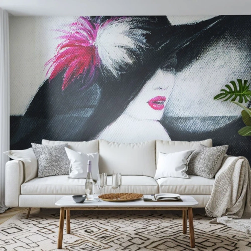 Egyedi tapéta Premium Canvas - Mindig titok - Nő Kalapban, Női Arc, vörös ajkak