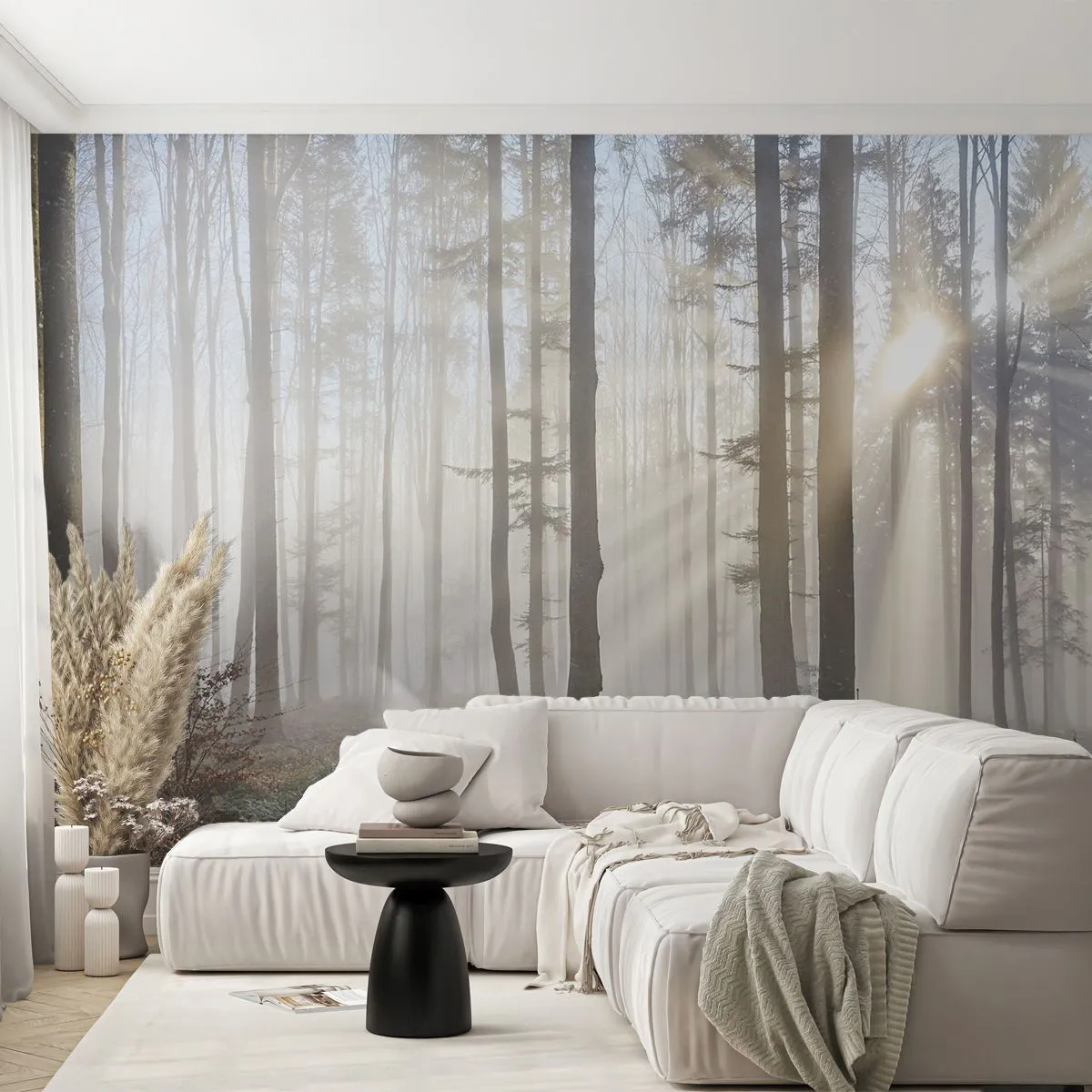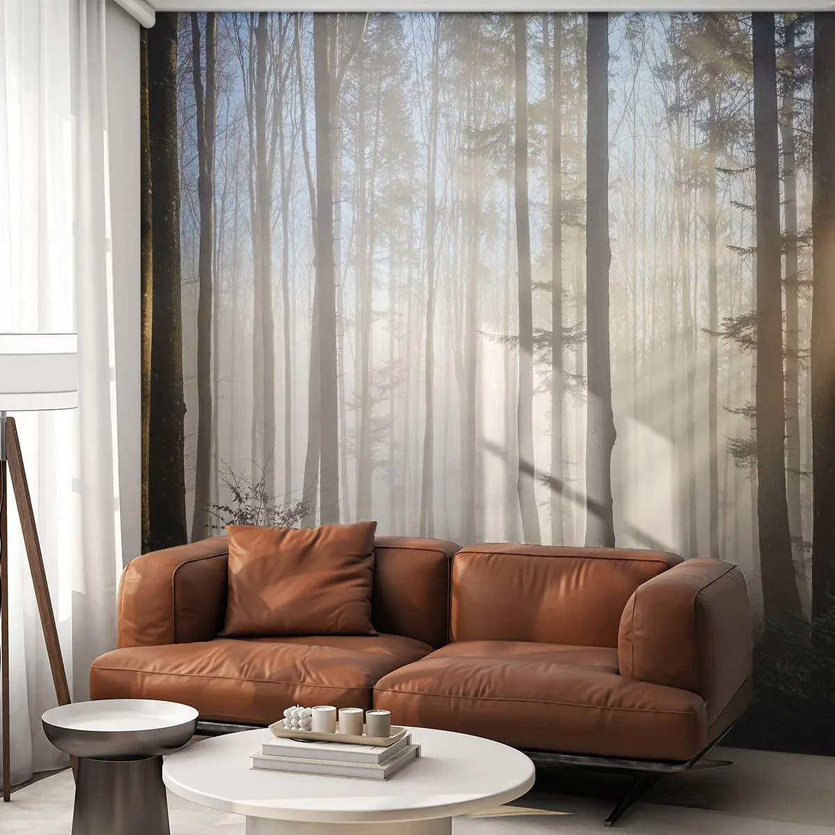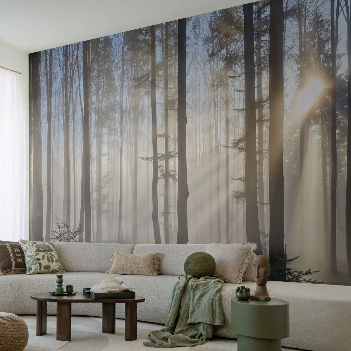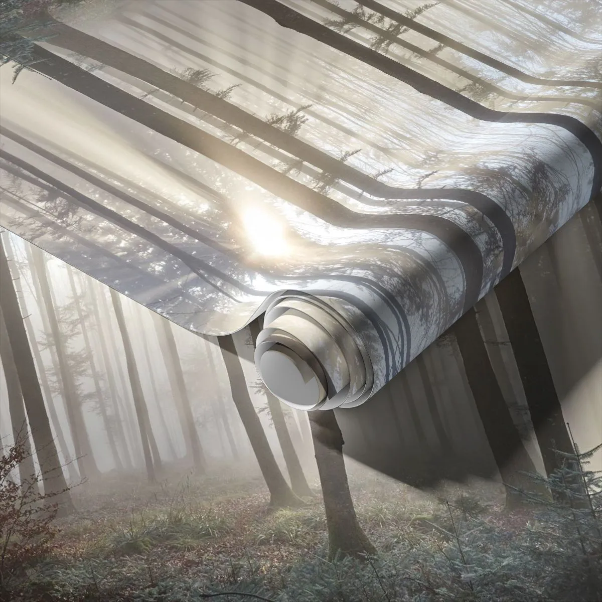Fotótapéta Premium Sand - A köd is felébredt - Tájkép, Erdő, Köd - 100x70 cm