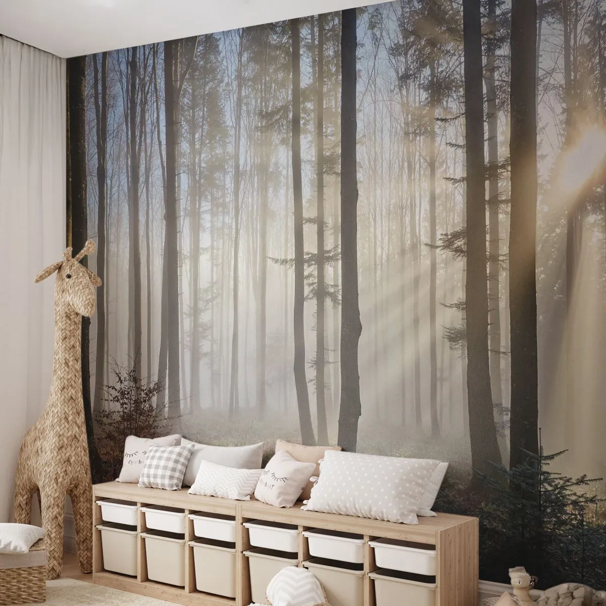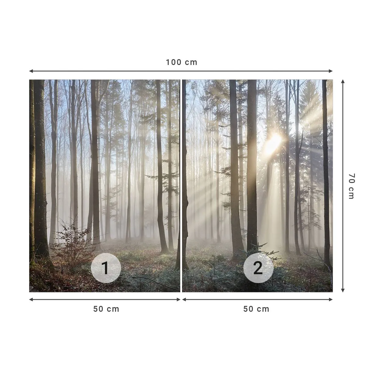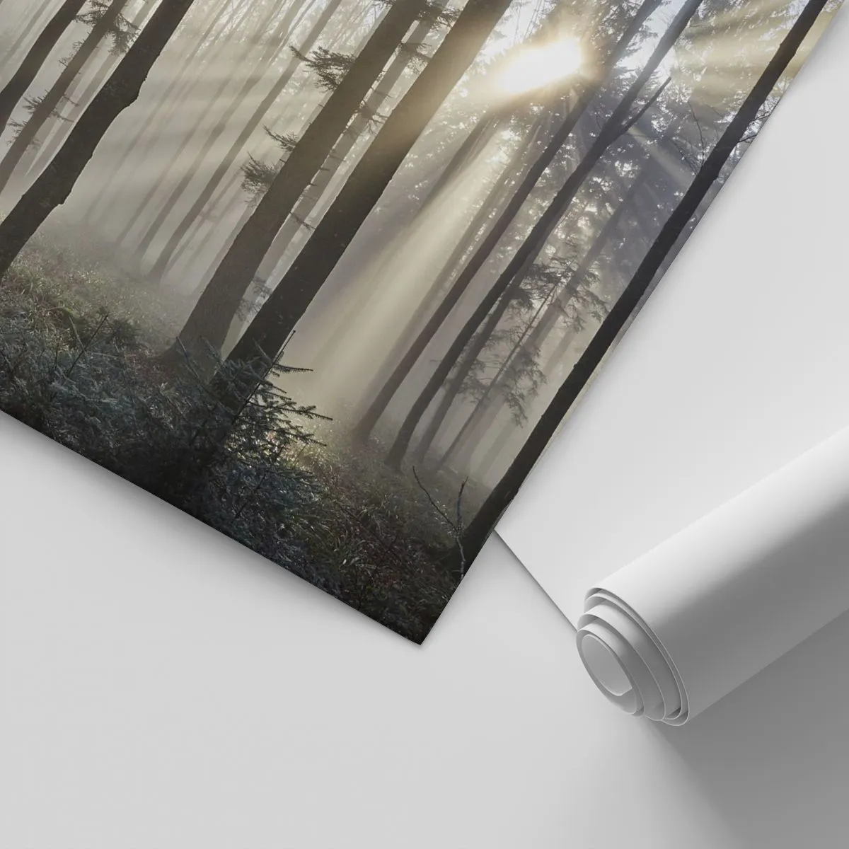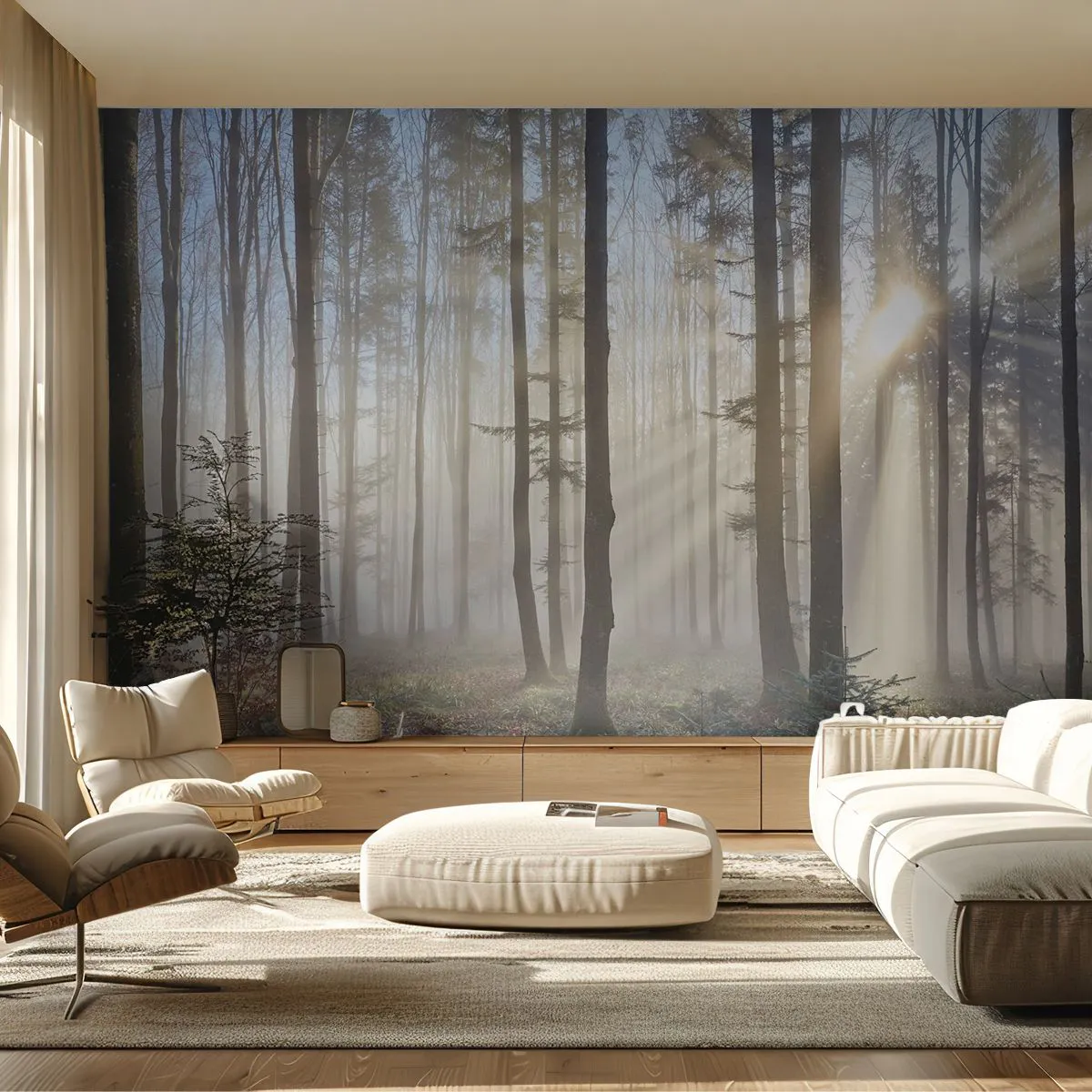 Fotótapéta Premium Sand - A köd is felébredt - Tájkép, Erdő, Köd - 100x70 cm
