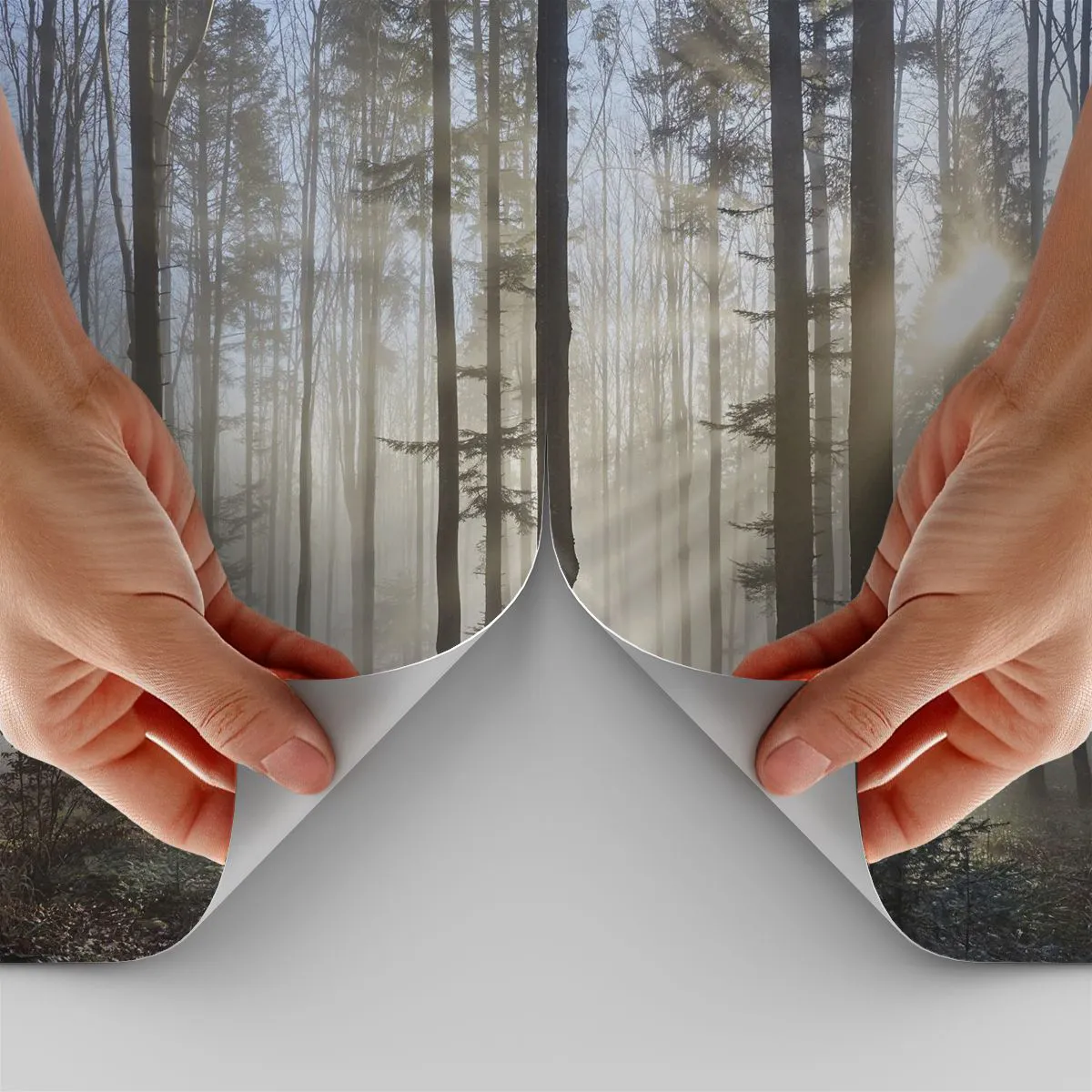 Fototapeta samoprzylepna wyposażona jest w bezwonny, bezbarwny klej kanalikowy - Pozwala to na łatwą aplikację i usunięcie pęcherzyków powietrza spod samego materiału przy aplikacji na ścianie.