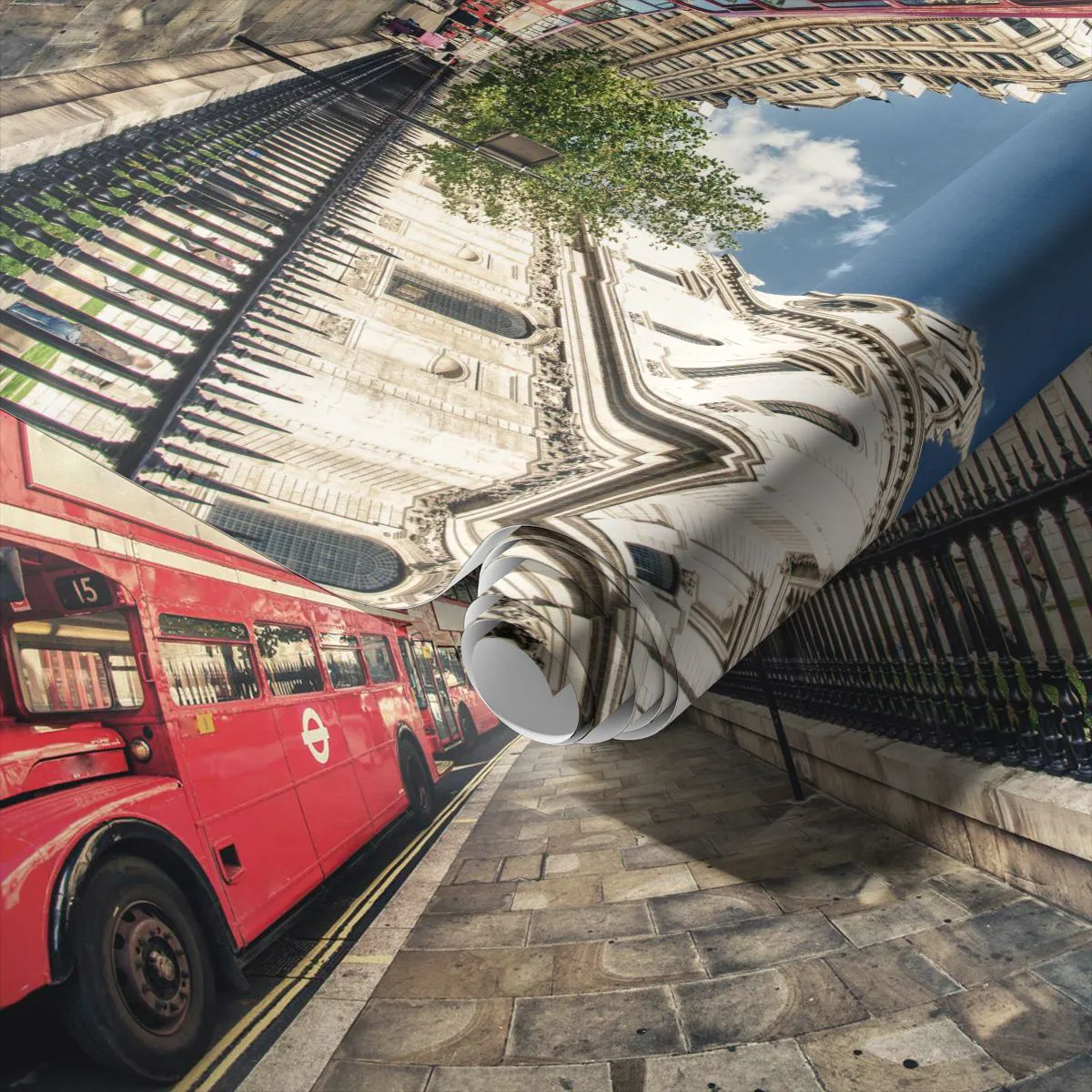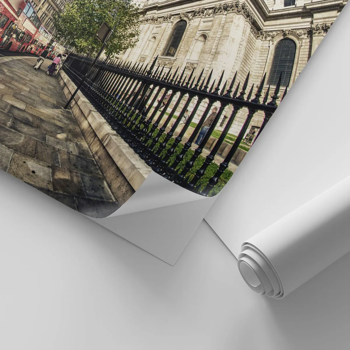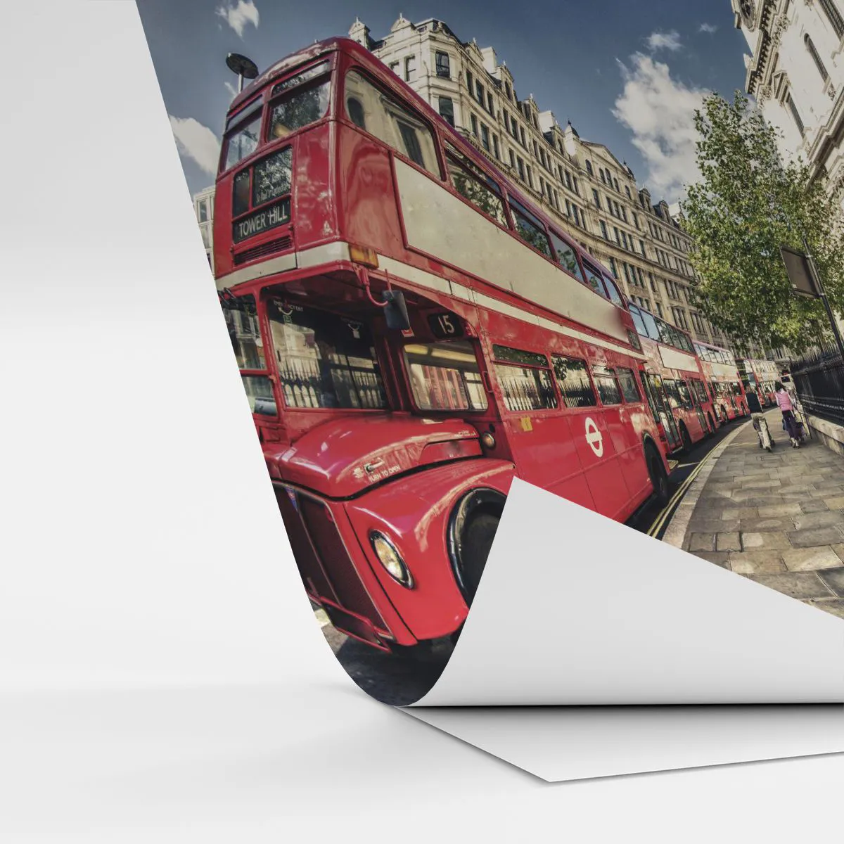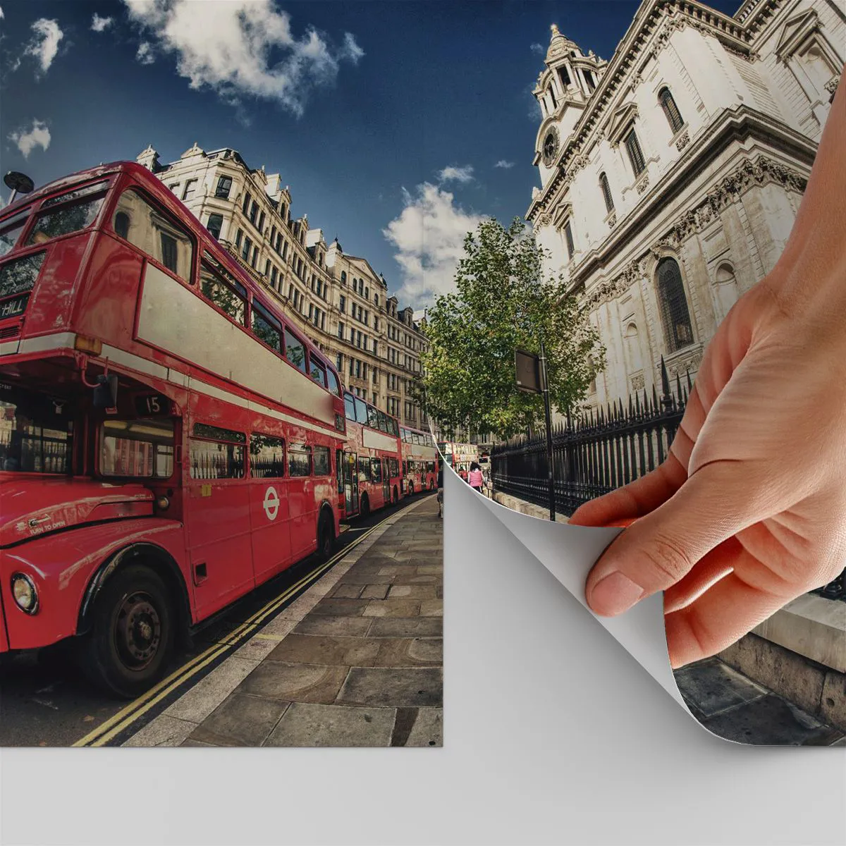 Egyedi öntapadó tapéta Deluxe Sticker - Londoni utca szürke és piros színben - Város, London, Piros busz