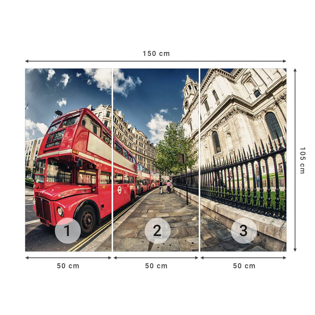Fotótapéta Premium Sand - Londoni utca szürke és piros színben - Város, London, Piros busz - 150x105 cm
