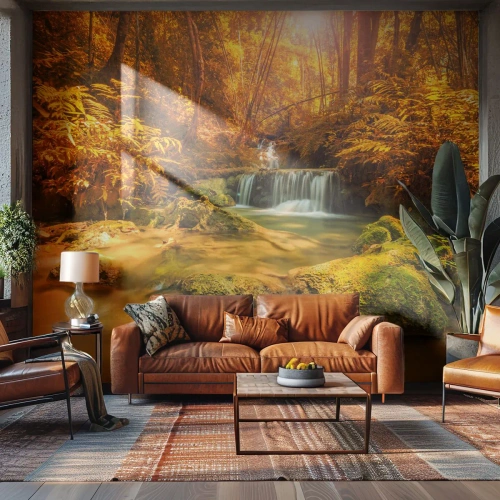 Öntapadós Fotótapéta Deluxe Sticker - Erdei vízesés aranyban - Tájkép, Vízesés, Thaiföld - 350x256 cm