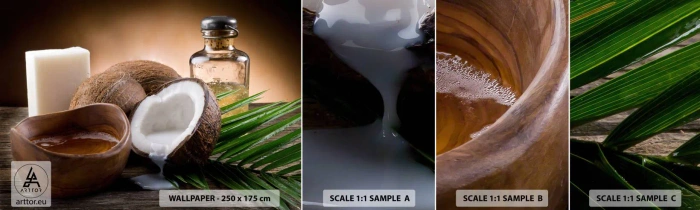Fotótapéta Minta Standard Eco - Egészség a trópusi szigetekről - Kókuszdió, Gyógyfürdő, Kókuszolaj - 100x30 cm