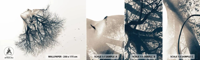 Fotótapéta Minta Standard Eco - Hallgatva a fa suttogását - Absztrakció, Női Arc, Fa - 100x30 cm
