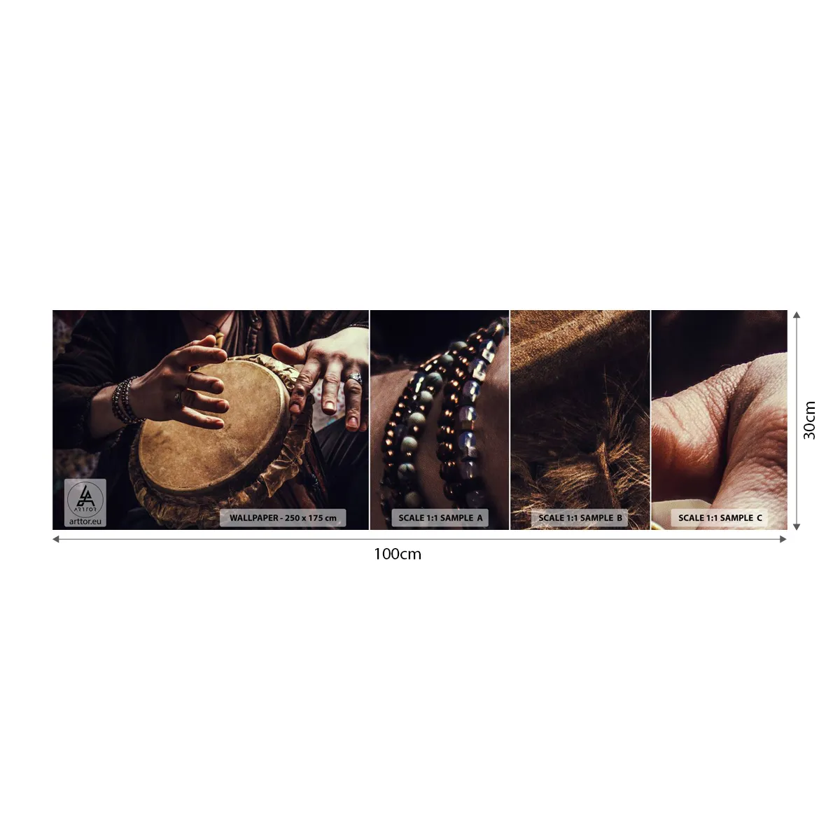 Fotótapéta Minta Standard Eco - A szív ritmusában - Dob játék, Afrika, Zene - 100x30 cm