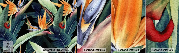 Fotótapéta Minta Standard Eco - A trópusok lángoló virágai - Strelitzia Royal, Virág, Afrika - 100x30 cm