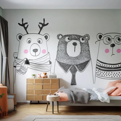 Fotótapéta Premium Canvas - Maci, macika és mackó - Gyerekeknek, Medve, Ábra - 500x350 cm