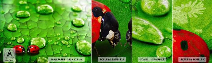 Fotótapéta Minta Premium Sand - Találkozás a zöldben - Természet, Katicabogár, Egy csepp víz - 100x30 cm