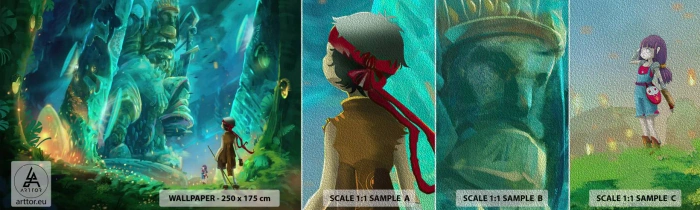 Magas grammázs 290g/m2 tapintható szerkezettel együtt Vászon a tapéta felületén olyan exkluzív és dizájn megoldásokat kínál, amelyek minden egyedi belső dekorációt kereső személy számára ideálisak. Az anyag rendkívüli vastagságának előnye a kiváló fedettség is, amely jelentősen megkönnyíti a felszerelést. Struktúra fotótapéta PREMIUM CANVAS olyan hatást kelt, mint a vastag vászonra nyomtatott.