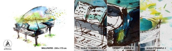 Fotótapéta Minta Premium Sand - Elvarázsolt a zenében - Zongora, Absztrakció, Zene - 100x30 cm