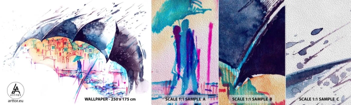 Fotótapéta Minta Premium Sand - Sétálj az esőben - Absztrakció, Esernyő, Építészet - 100x30 cm