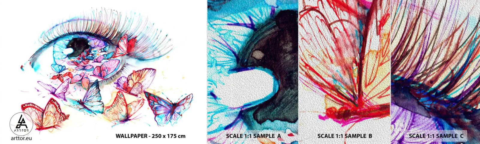 Fotótapéta Minta Premium Sand - Mesebeli szemek varázsa - Női Szem, Pillangó, Absztrakció - 100x30 cm